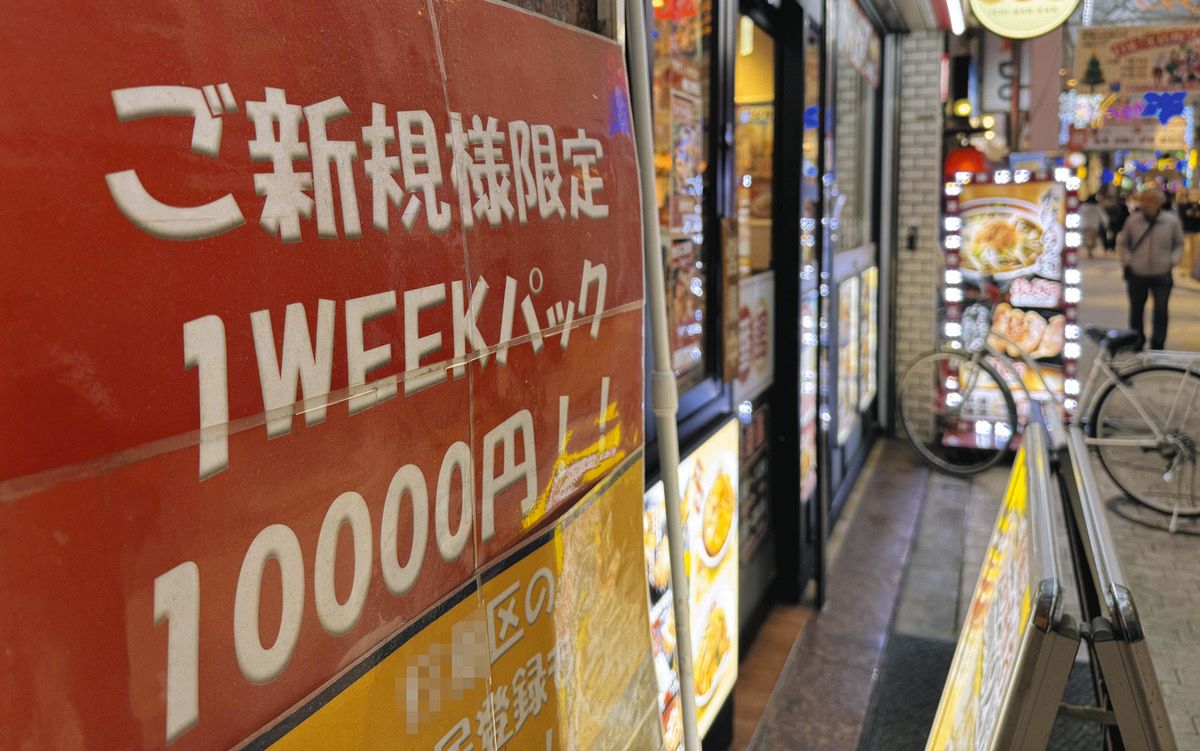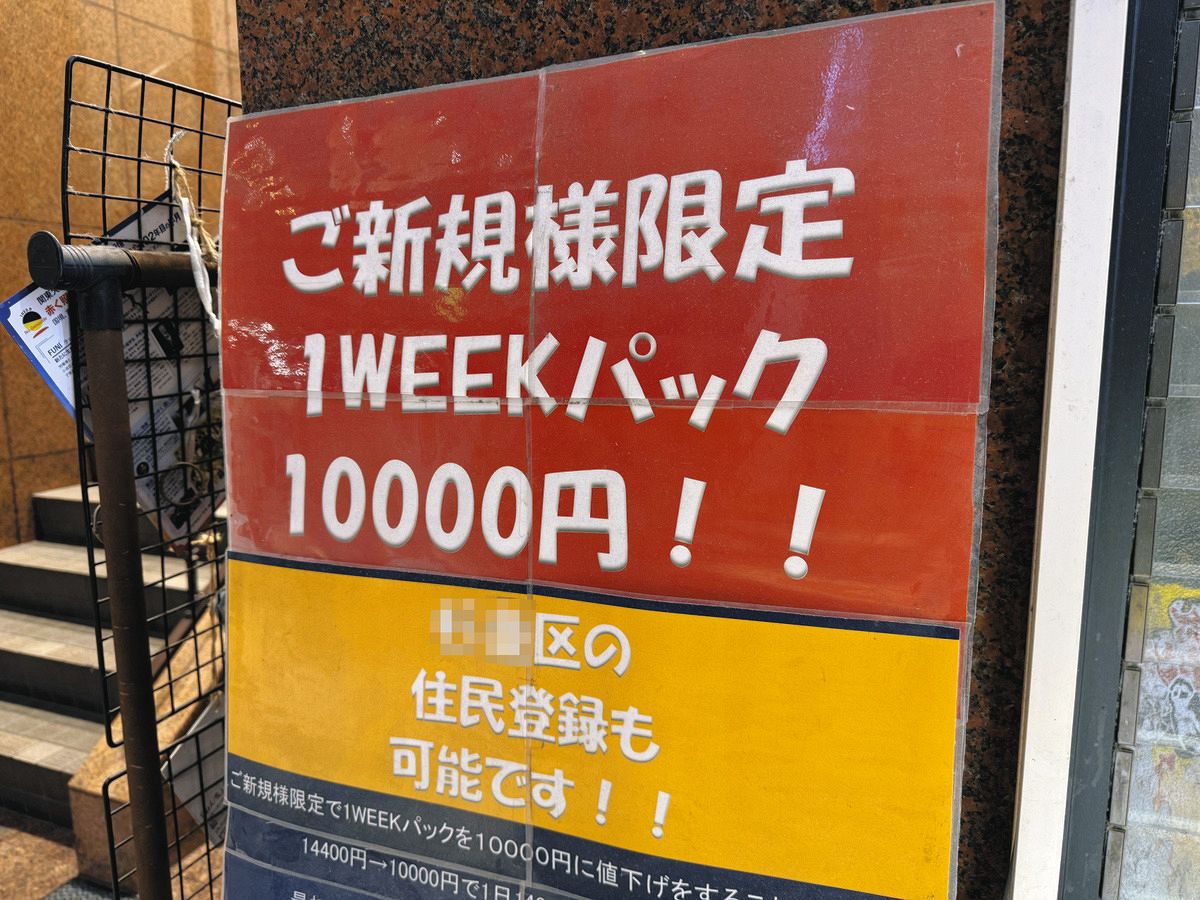 1週間パックをアピールするネットカフェの看板(一部画像処理)
