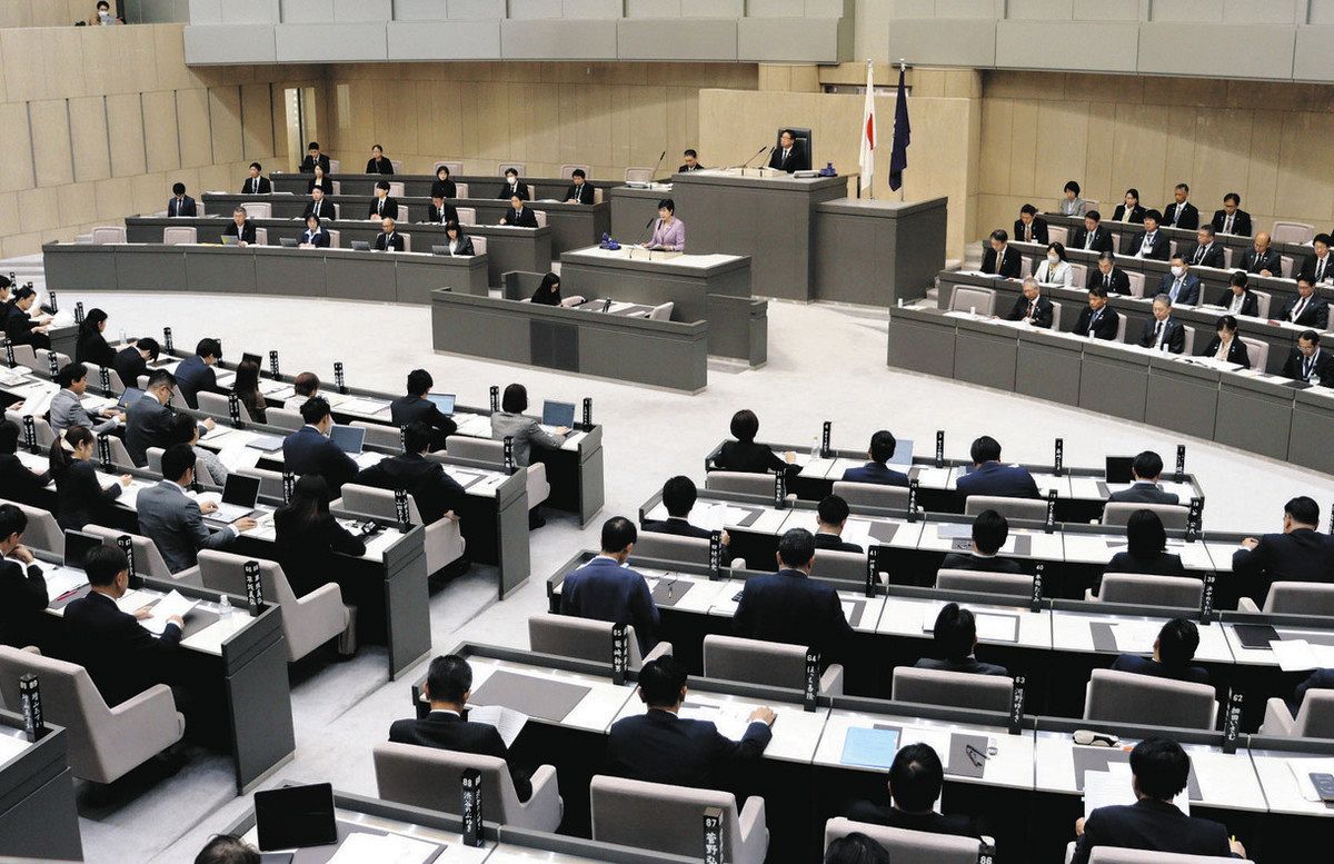 都議会第4回定例会が開会し、所信表明演説をする小池百合子知事