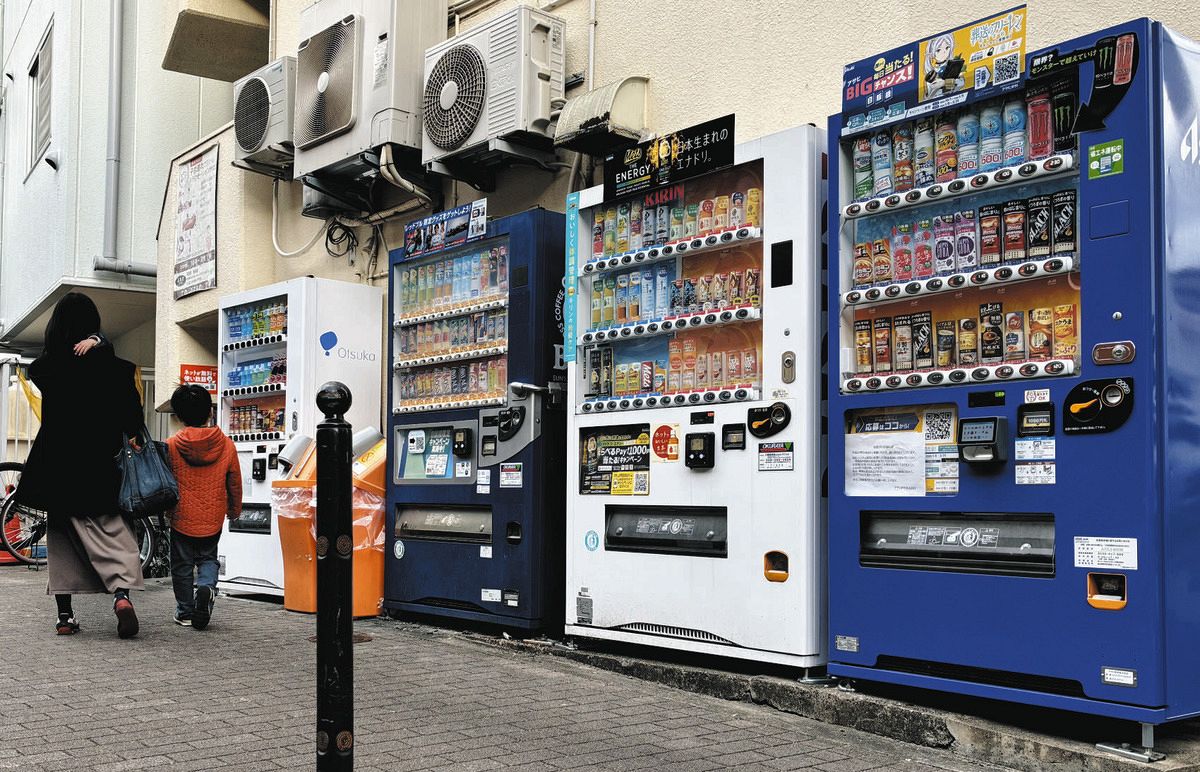 町に並ぶ清涼飲料の自動販売機。近年、少しずつ姿を消している=東京都内