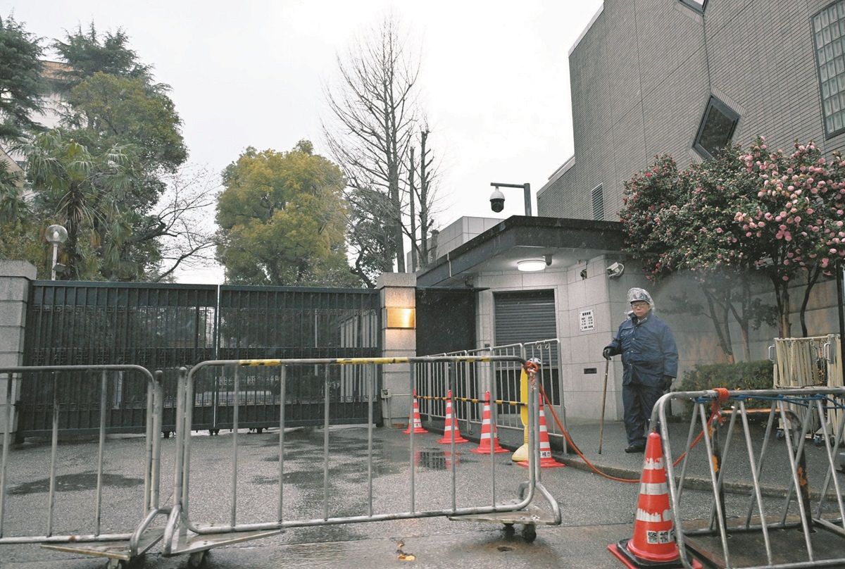 在日中国大使館は、六本木交差点から南西に約500メートル離れた元麻布エリアの高級住宅街にあり、警視庁が24時間体制で警戒、警備に当たっている。