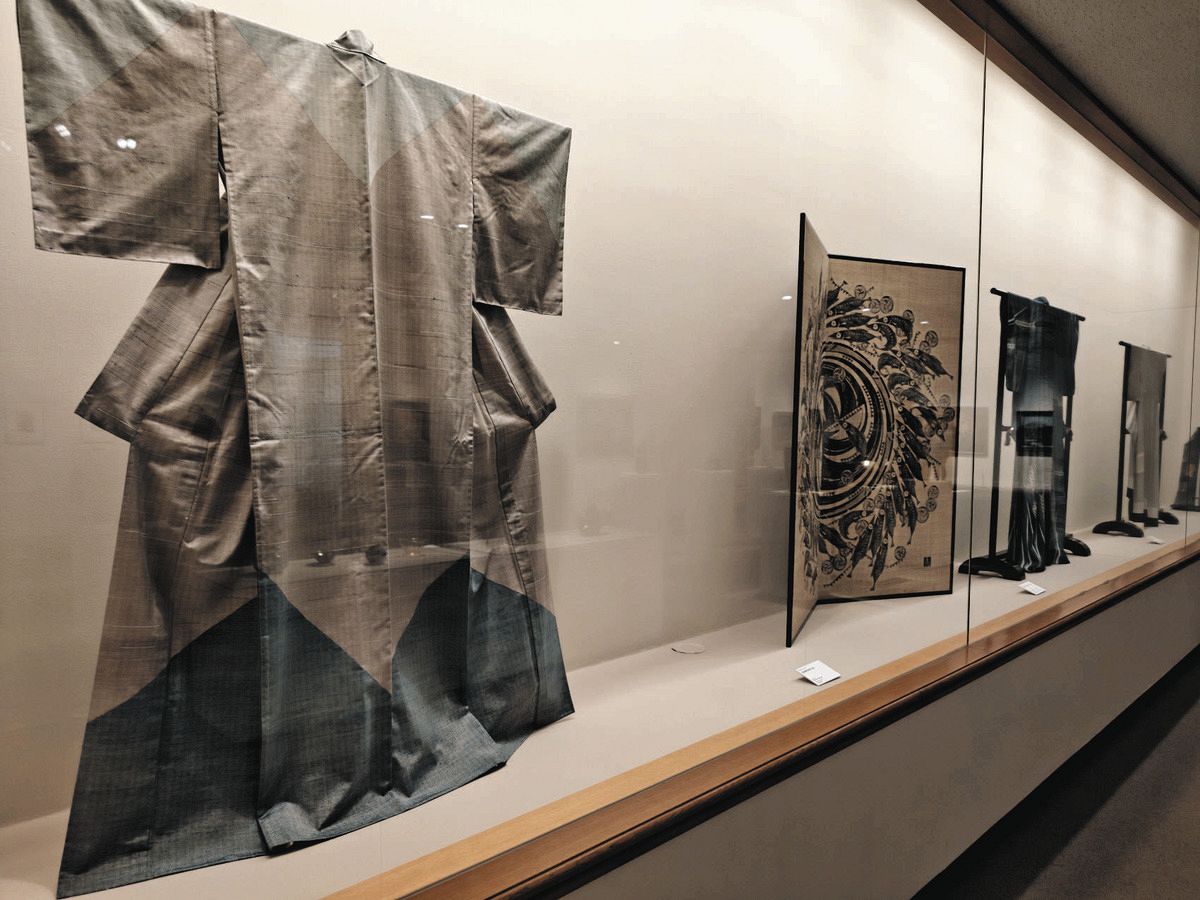 志村ふくみの紬(左)など、生活に密着した作品が多数展示される=世田谷美術館で