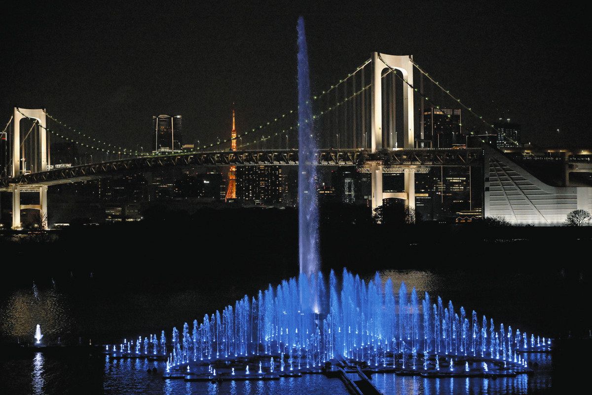 お台場海浜公園(東京都港区)に28日、世界最大級の噴水「東京アクアシンフォニー」が完成、噴水ショーが始まった。都が臨海副都心の新たなランドマークとして26億円超をかけて整備。計画は小池百合子知事自ら、2024年9月の定例記者会見の場で発表した。