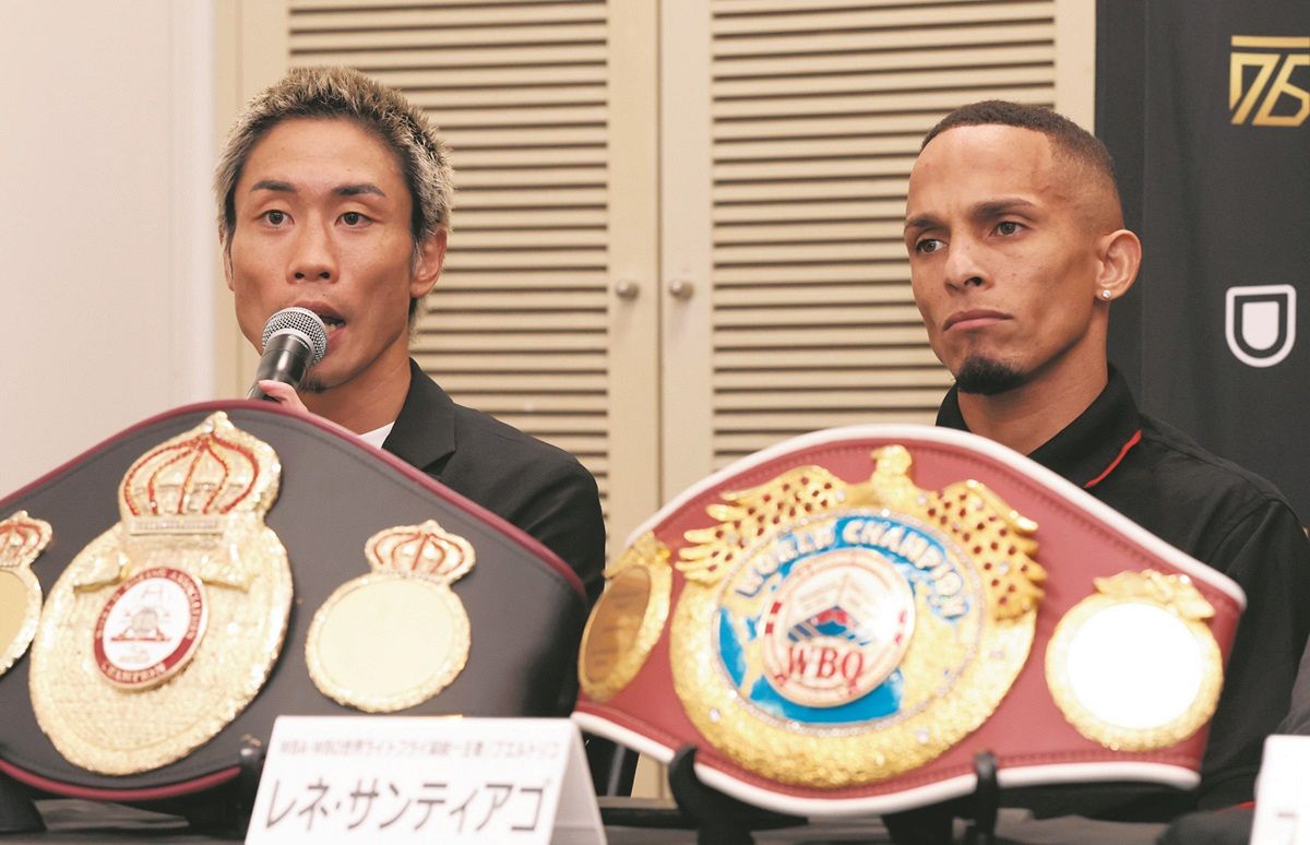 昨年3月に岩田翔吉(帝拳)からWBO、同12月に高見亨介(同)からWBAの王座を奪ったサンティアゴは「準備は万端。日本人選手に3連勝したい」と余裕を見せた。
