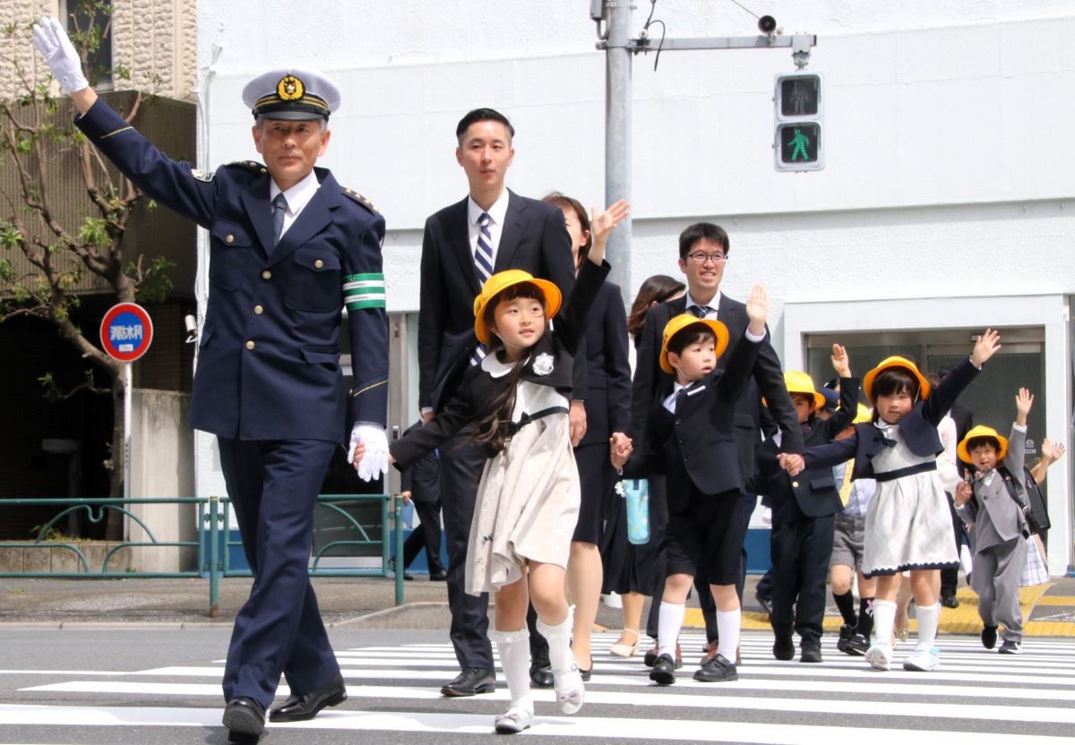 春の全国交通安全運動(6~15日)に合わせ、警視庁の筒井洋樹警視総監が6日、東京都の大田区立大森第一小学校で、新入生を対象に横断歩道の渡り方などを指導した。入学式を終えたばかりの新1年生82人に、筒井総監は「しましま模様の横断歩道を渡りましょう」と説明。保護者には「通学路を子どもと一緒に歩き、危険箇所を教えてあげてください」と呼びかけた。