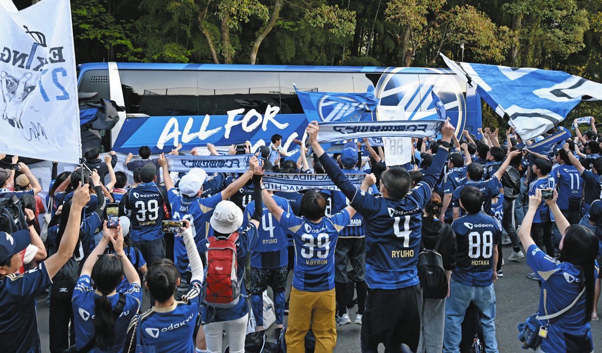 11日夕の町田GIONスタジアム。柏レイソル戦の後、帰路につく選手バスをサポーターらが取り囲んだ。「町田の未来、切り開け」。チャント(応援歌)を響かせ、ファイナルズの舞台であるサウジアラビアに向かう選手たちを力強く送り出した。