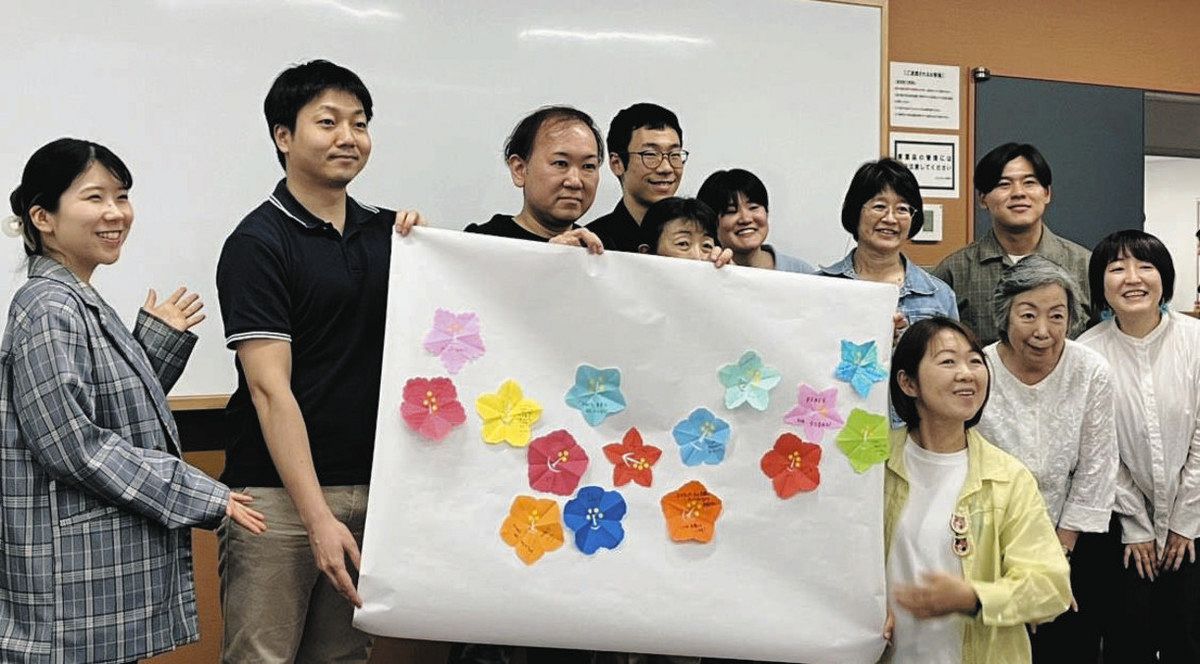 スーダンについて思い思いのハイビスカスを咲かせた参加者ら=都内で(いずれもJVC提供)