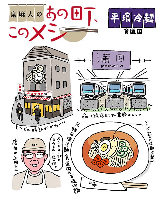 ドラマチックな苦労話を伺って、「では、そろそろ冷麺をいただきたく」と切り出したところ、オヤジさん、てっきりインタビューだけ……と思いこんでいたらしい。仕込みに1時間近くかかる、というので、駅の東口の方をゆっくりと散策(蒲田松竹撮影所跡地などへ行ってみたが、大した史跡はなかった)して店にもどってきた。