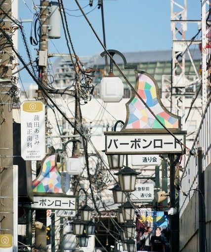 「元祖平壌冷麺 食道園」があるバーボンロード。東急池上線の高架沿いに延びる通りで、昭和レトロ感が漂う。