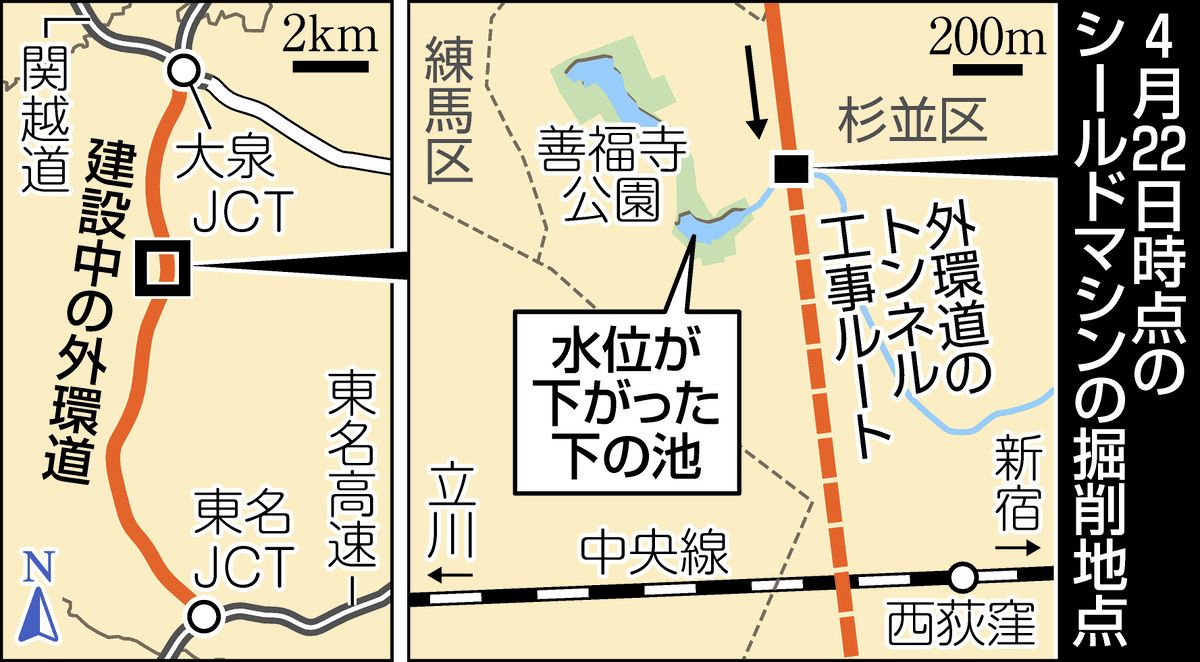 「この数日で突然、善福寺公園の池の水が減った。近くの外環道の工事の影響では」。東京都杉並区の女性読者(70)から本紙「ニュースあなた発」に連絡があった。外環道(東京外郭環状道路)のトンネル工事が原因なのか。取材を進めると、人と自然の共生を考えさせられるいきさつがあった。(中沢誠)